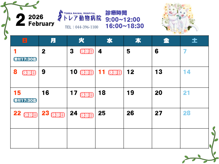 1月、2月の診療カレンダー
