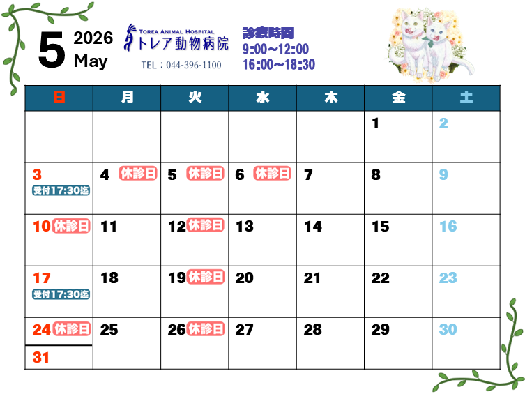 4月、5月の診療カレンダー